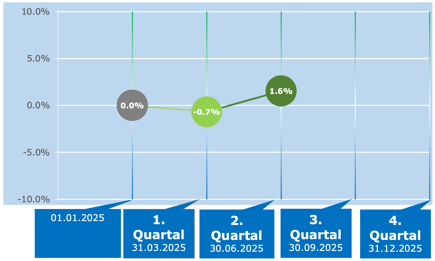 Sind Sie am aktuellen Performanceverlauf interessiert? Hier sehen Sie die Performance seit Jahresbeginn nach Quartalen aufgeteilt.